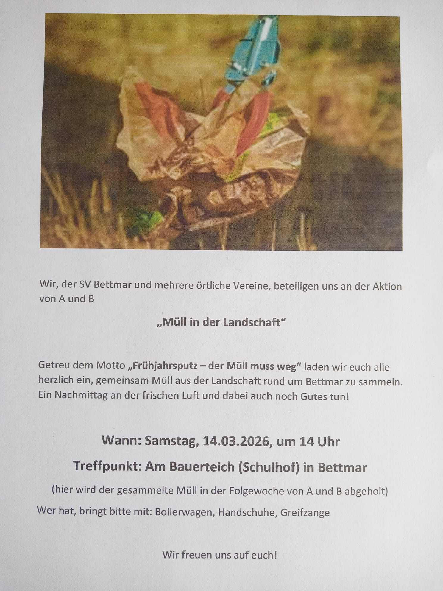 Aktion „Müll in der Landschaft“ in Bettmar